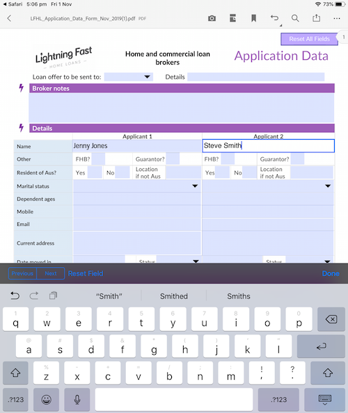 The application form is a PDF with drop-down options and calculations. You can print and write in the details if you wish, or save to your PC or iPad and complete electronically. Depending on your PC or iPad, you may need to install a PDF reader to utilise the full features of the application form.